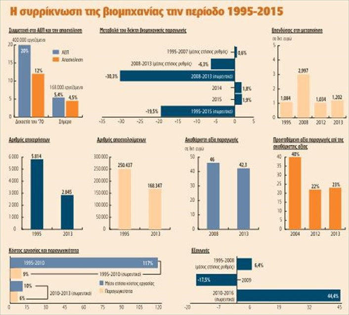 Σήμερα, το ποσοστό συμμετοχής της μεταποίησης στο ΑΕΠ έχει περιοριστεί σε 5,4%